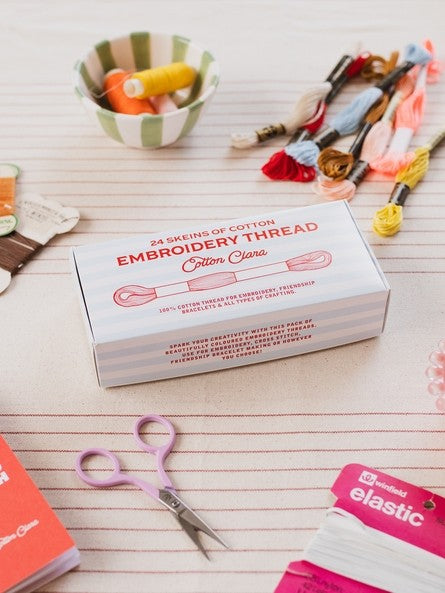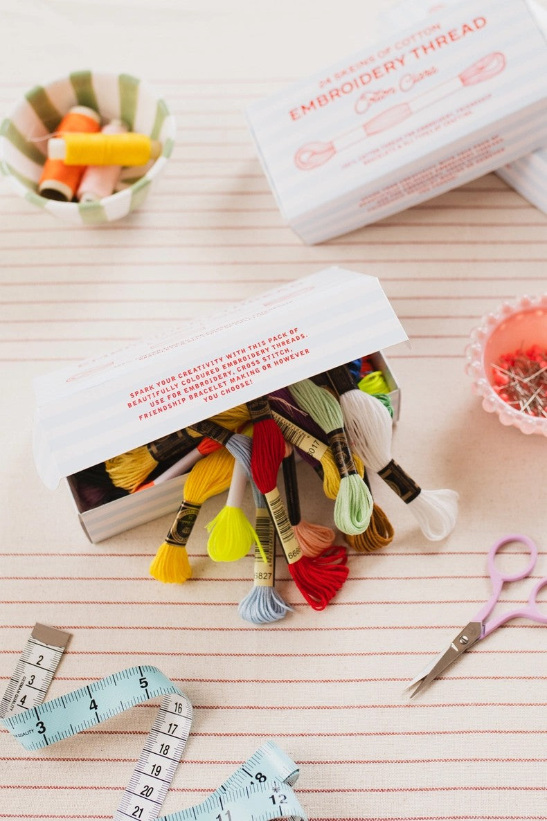 ABOUT A vibrant pack of 24 cotton embroidery skeins, perfect for embroidery, friendship bracelets, sewing projects, and creative play. This collection offers endless possibilities for makers of all ages. Neatly packaged in a box, it’s a lovely gift for crafters or a colourful essential to keep in your stash.