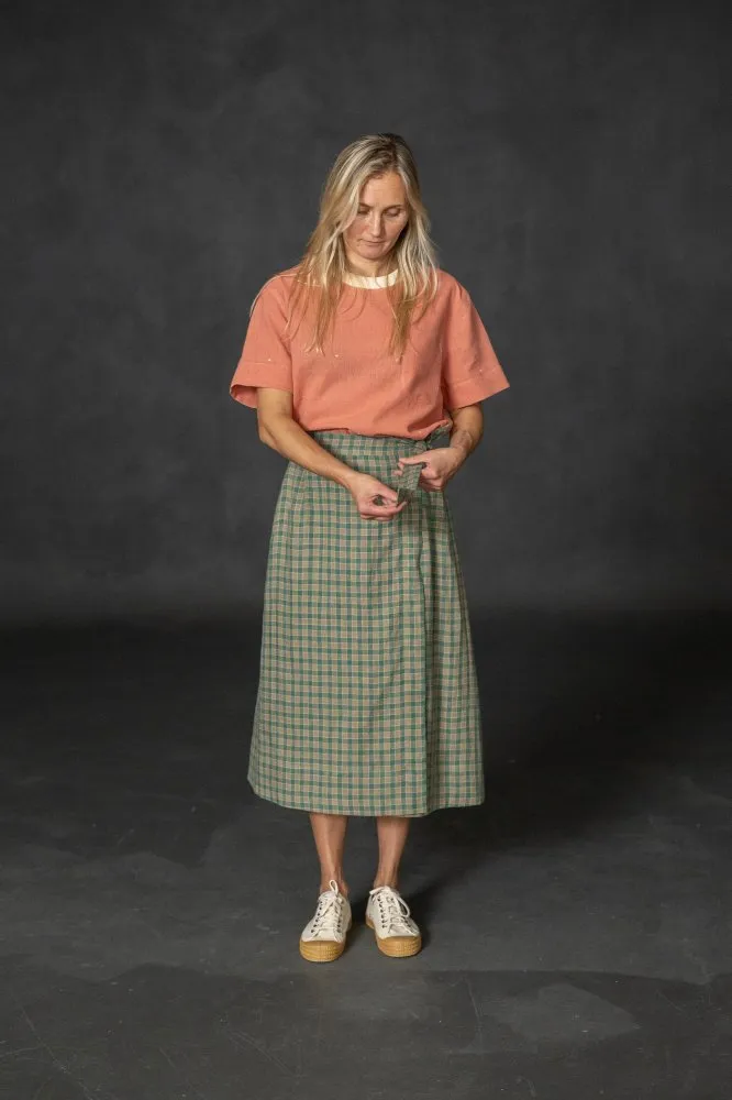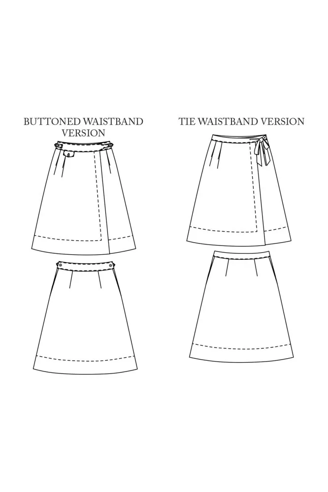 ABOUT For climbing mountains or pounding pavements, this walking skirt has two versions, a high waistband, pocket and button detailing, ideal for utility cloth or a simple tie detail for soft linen.
