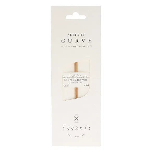 The CURVE Koshitsu interchangeable needle tips by Seeknit are made of bamboo. The Koshitsu knitting needles undergo a high-pressure treatment at high temperatures, after which they are carefully polished with natural plant wax. This not only makes the knitting needles very durable, but also protects them against external influences. In addition, it prevents the needles from warping over time. It also makes the surface of the needles even and smooth. The lightweight knitting tips lie comfortably in the hand and the natural material feels pleasantly warm to the touch. Thanks to the seamless transition between the bamboo tips to the screw fitting, your yarn will never get caught. The needle tips can be connected easily and quickly to a Seeknit CURVE cable. The screw fittings, made from durable stainless steel, fit together perfectly: once you screw the needle tip and the cable together, the connection is almost invisible. The needle tips have different screw sizes, depending on the needle size. For needle sizes 2.00-3.25mm you need a cable with screw size M1.8 and for needle sizes 3.50-10.00mm a cable with screw size M2.